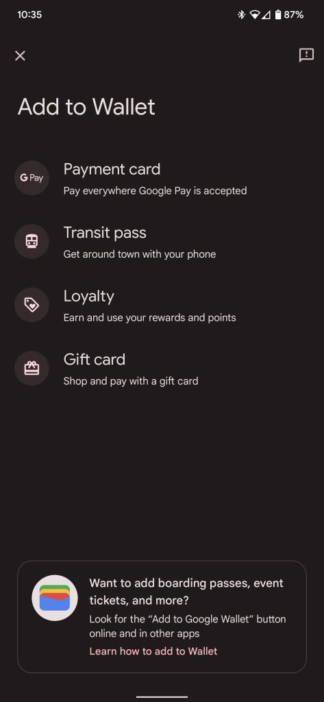 Wallet wants nothing more than to replace your physical wallet. That means managing your NFC-enabled mobile payments, housing loyalty cards and tickets, holding on to public transit info and gift cards, and eventually, carrying your ID/driver’s license.
