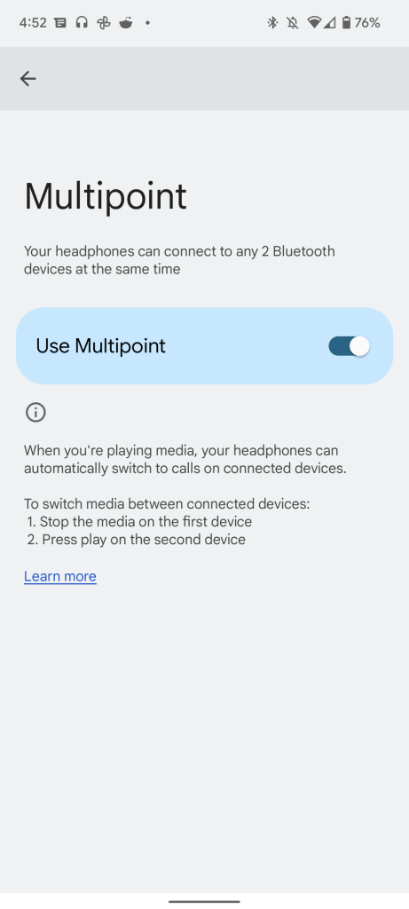 Multipoint is even accessible through Android’s settings menu. Apparently, the Buds work with a Windows computer with Multipoint, which was expected functionality – after all, Multipoint is a Bluetooth feature, it’s only the intelligent switching that Google is running through Fast Pair.
