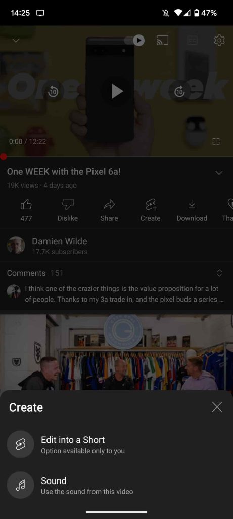 The process is extremely easy, and it takes only seconds to get things up and running. First, find a video you’ve already uploaded to YouTube. Under the video, you should see the Create button. Hitting it will allow you to choose Edit into a Short. From there, you can trim and import clips from that video and create a Short out of it. In order to add video, you need to back out from the editing screen once. At that point, you can shoot or upload more footage.
