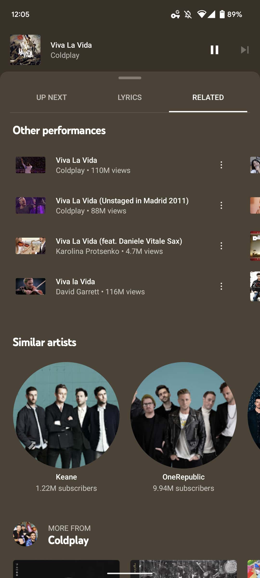 The number of versions surfaced by YouTube Music in “Other performances” greatly varies and mostly only appears for famous songs/artists. Both audio and video (as noted by the rectangular cover art) can appear.