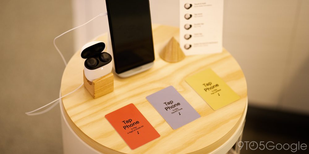 Each station has a Pixel smartphone with three NFC cards that trigger playback of three different styles of music to play on the paired earbuds. There’s also a small card that explains the touch gestures on the Pixel Buds Pro.