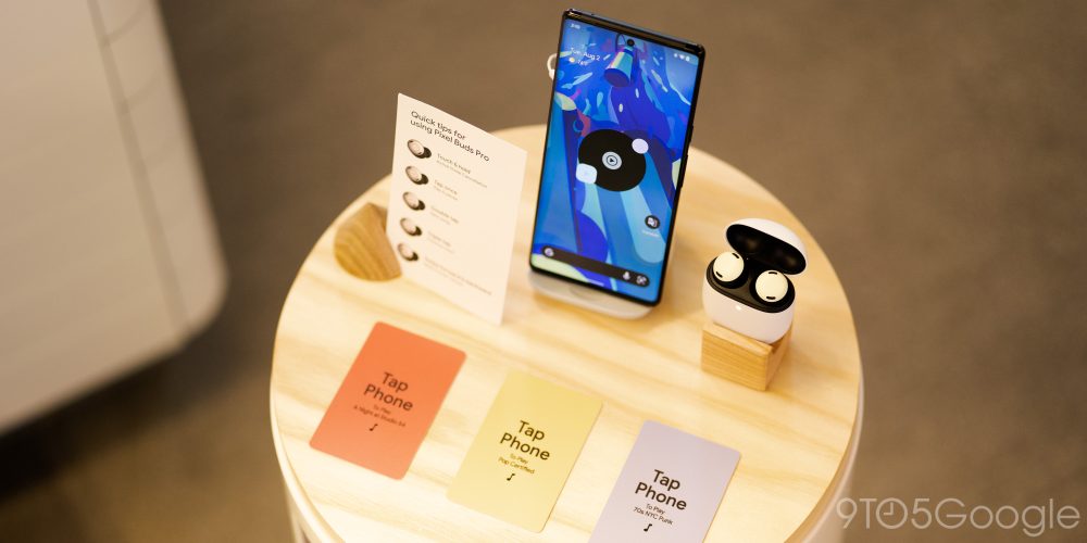 Each station has a Pixel smartphone with three NFC cards that trigger playback of three different styles of music to play on the paired earbuds. There’s also a small card that explains the touch gestures on the Pixel Buds Pro.