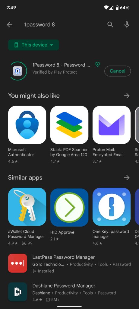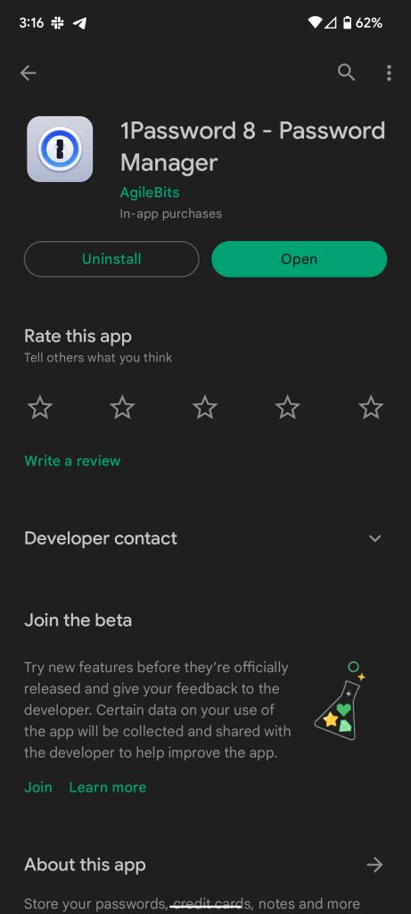 Once you find the older one, go ahead and uninstall it. What you’re left with is a much better 1Password app for Android that rivals the best password storage apps out there.