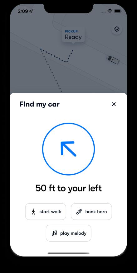Once closer, there is a distance-to-car compass that provides “close-range guidance” like “50ft to your left.”