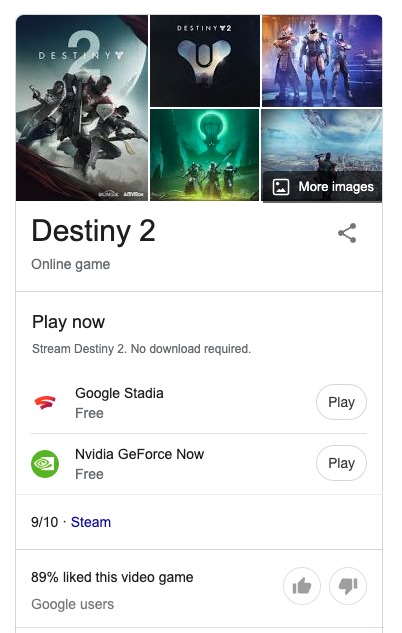 Oddly enough, the list of services seems to vary between desktop and mobile. Searching for “Destiny 2” on Android only brings up a result for Stadia, while the same search on desktop shows both GeForce Now and Stadia.