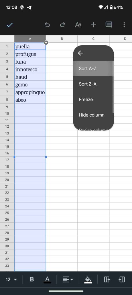The process is fairly similar on both desktop and on mobile devices like a Samsung Galaxy phone. Either way, you need to select the entire column or row and then select Sort A-Z. Do note that you can also do this with numbers. There are no separate buttons for numbers. Rather, you can ask Google Sheets to alphabetize numerical data, and you’ll see the result you want.