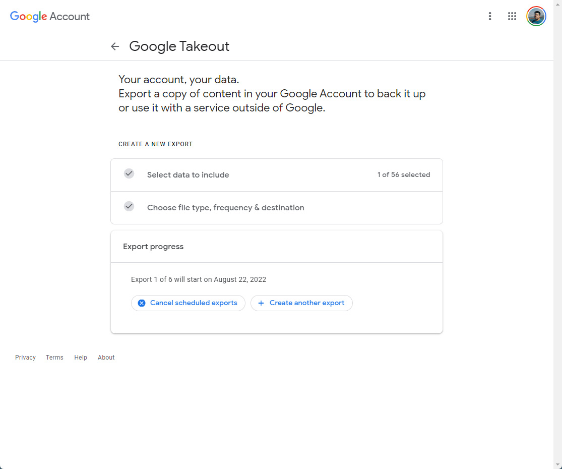 The service is extremely useful for creating a backup of multiple Google apps at a time or setting up an individual backup for one app like Google Photos. You can even set automatic backups for Google Photos, which will send you a backup file every so often that you can download, keeping your saved files up-to-date.