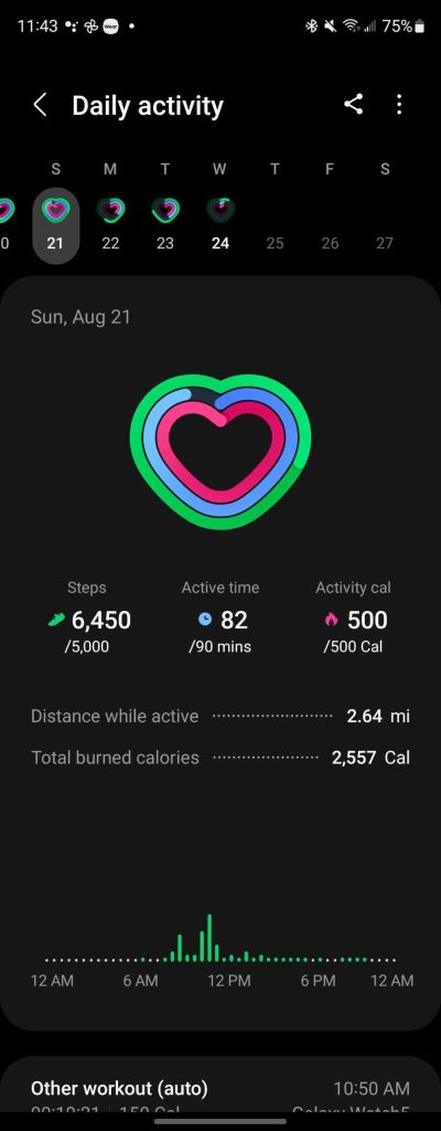 Battery life, in short, is good. It’s still not great, and you’re still very much looking at a smartwatch you’ll need to charge daily. But, this is battery life that’s just a bit less anxiety-inducing. Over a week and a half of testing, the Galaxy Watch 5 only gave me a “low battery” warning once, with me charging up the battery daily while I was in the shower/getting ready. 30-45 minutes of charging each morning was enough to ensure I had enough power to get through a full day plus sleep tracking.