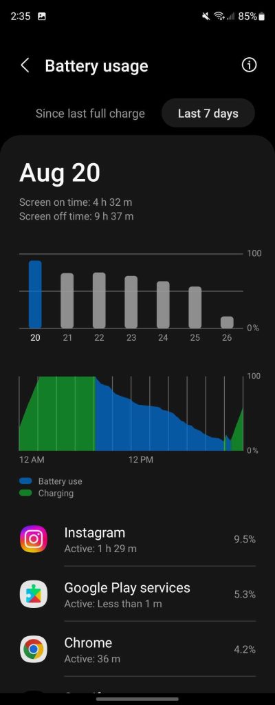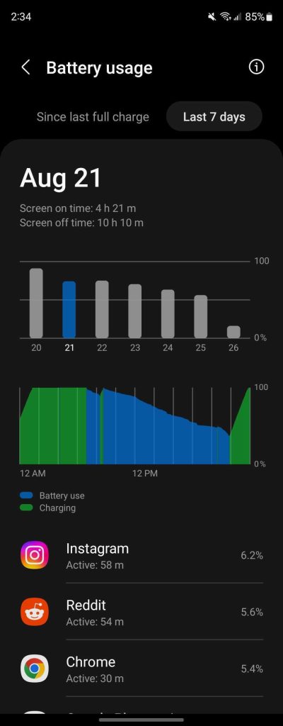 Most days, I had zero problems getting the Fold through my entire day. 3.5-4.5 hours of screen time was my average over the course of the day, and I usually went to bed before the phone even hit 20% remaining capacity. That’s a huge improvement over the Fold 3, which often needed a boost around 7 p.m. to get through the rest of the evening.