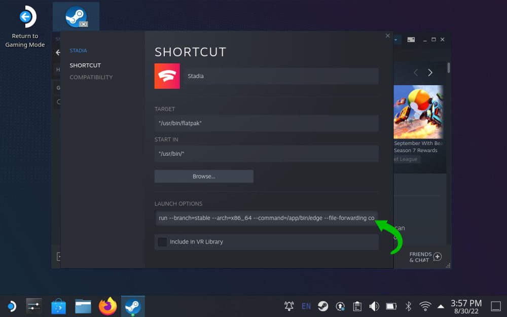 - In desktop mode, open up Steam and find Stadia in your Library.