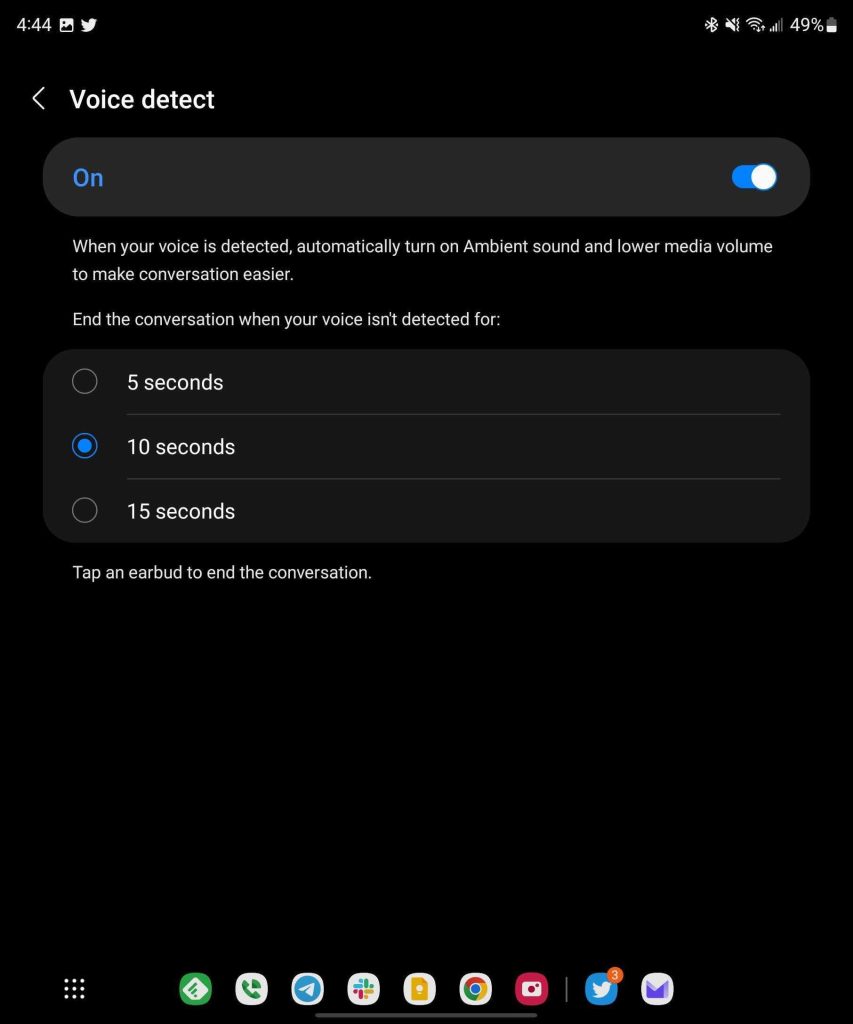 As usual with Samsung’s earbuds, it did take switching the EQ settings to the “Dynamic” preset to get the best balance out of the sound. Dynamic provides more depth to the audio, where “Standard” is a bit too flat, and “Bass boost” is too heavy on the lows.