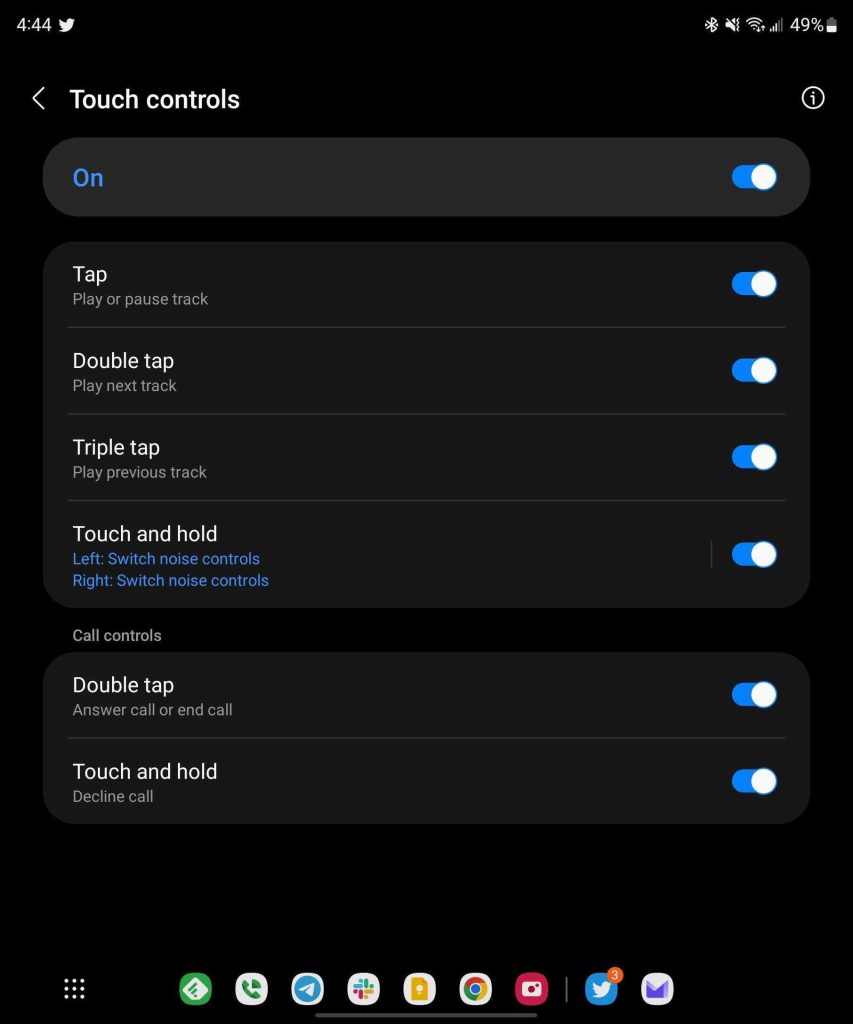 These gestures are pretty standard, and they work well. But my problem is the same as with most earbuds. You can’t adjust the earbud’s fit without accidentally triggering the gestures. Only Sony’s LinkBuds have really addressed this problem, but the sensitivity of Samsung’s touchpads makes this especially useful.