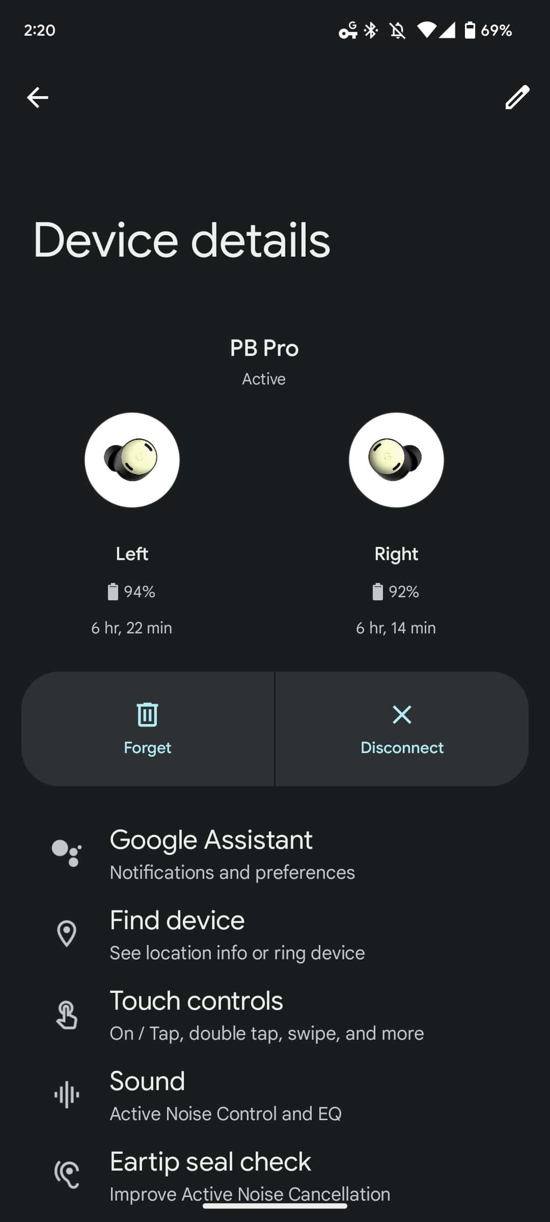 At the moment, the row of buttons for Active Noise Control are found on the “Sound” page of the Pixel Buds app/settings. Some users are now finding that the three-button strip with Noise Cancellation, Off, and Transparency are located directly on the Pixel Buds app homepage/”Device details.” It appears just under the “Forgot” and “Disconnect” actions.