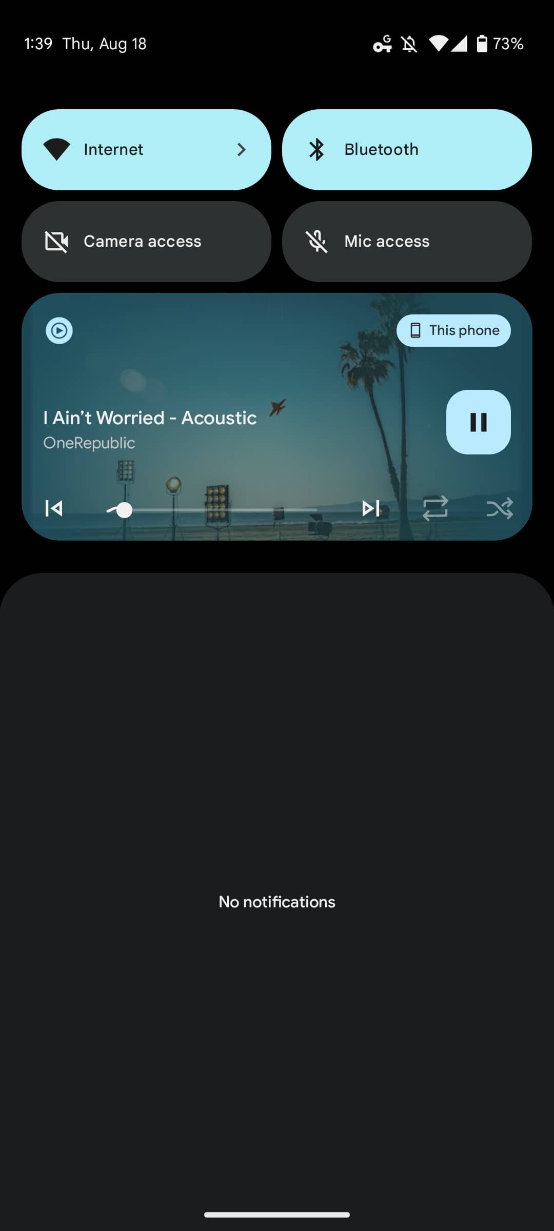 Original 8/18: The Android 13 media controls start with a new size that’s taller than what was on Android 12. (There’s a compact version, but only in landscape mode.) This allows for a larger cover art preview, though it’s a rectangular crop instead of showing the complete square artwork, like before.