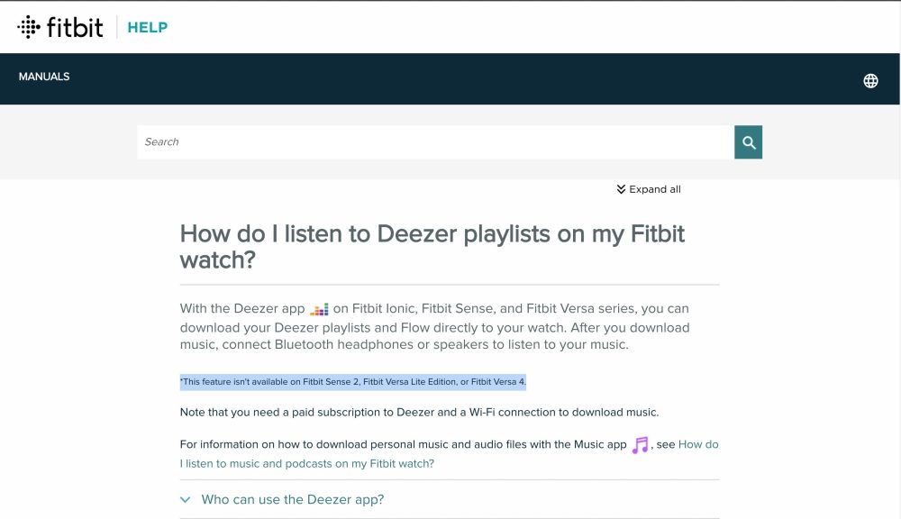 Additionally, another help article says Deezer “isn’t available on Fitbit Sense 2, Fitbit Versa Lite Edition, or Fitbit Versa 4.” The support page for Pandora just says “This feature isn’t available on Fitbit Versa Lite Edition or Fitbit Versa 4,” and presumably the Sense 2 not being mentioned is a mistake. Meanwhile, it was telling that the Charge 5 did not offer specialized Spotify controls after previous generations and the original Sense did.