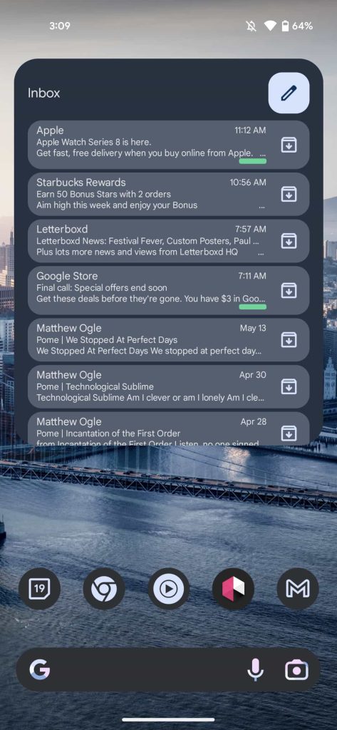 The Gmail update that made the widget smaller started rolling out last week, but it’s seeing a wider availability via the Play Store this afternoon. It will presumably be resolved with the next patch release.