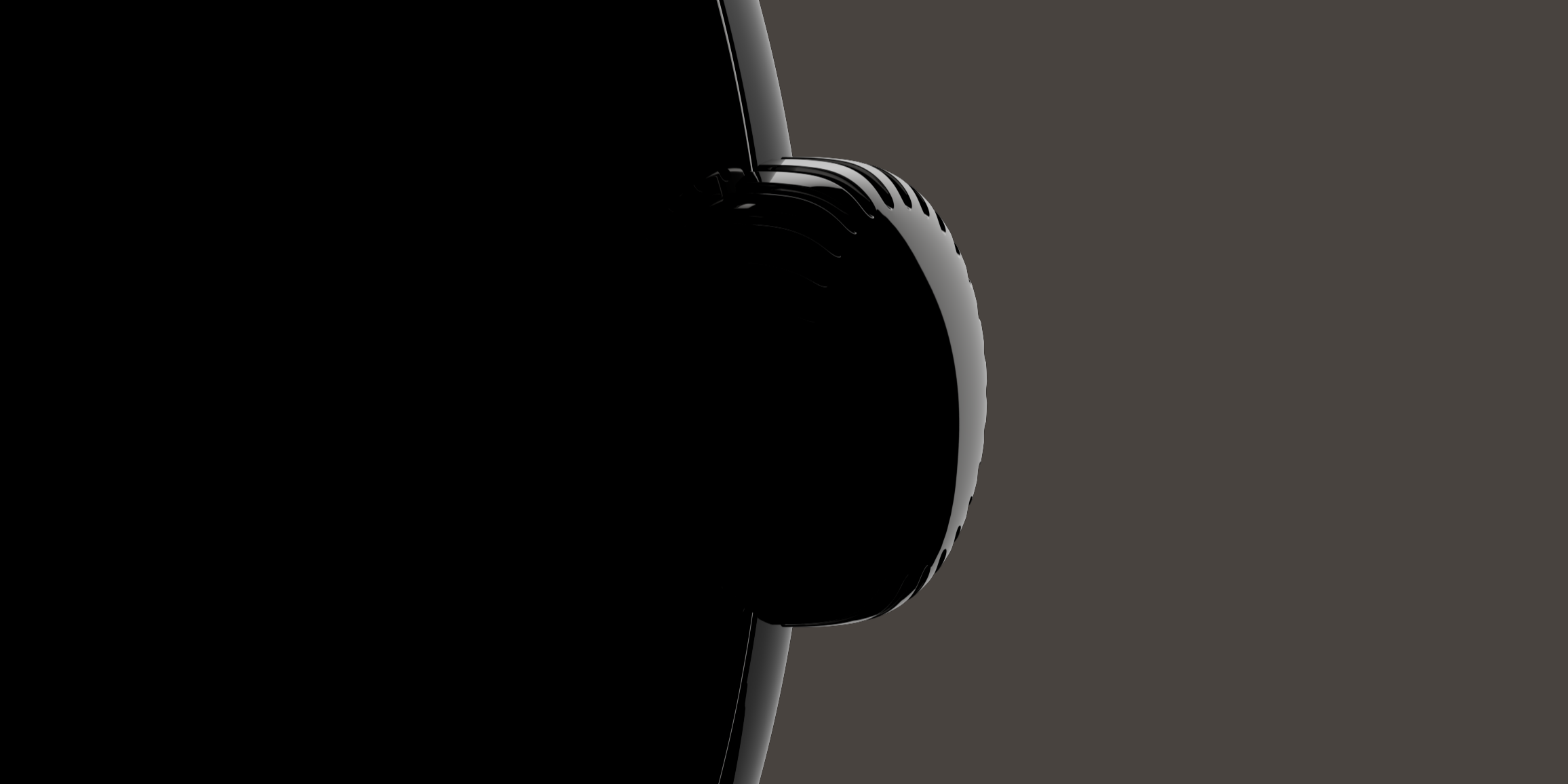 There’s a bottle cap-shaped crown that rotates and can be pressed at the 3 o’clock position with a button just above it. The case also has a long speaker grill on the left edge and two small circular cutouts.