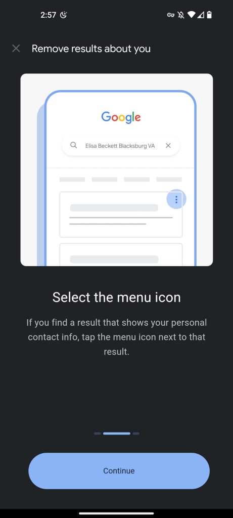 Original 9/20: For some today, opening the Google app on Android and tapping your profile avatar in the top-right corner reveals a new “Results about you” menu item. This takes users to a page that explains how they can request Google remove Search results that contain phone number, home address, email, or other PII.