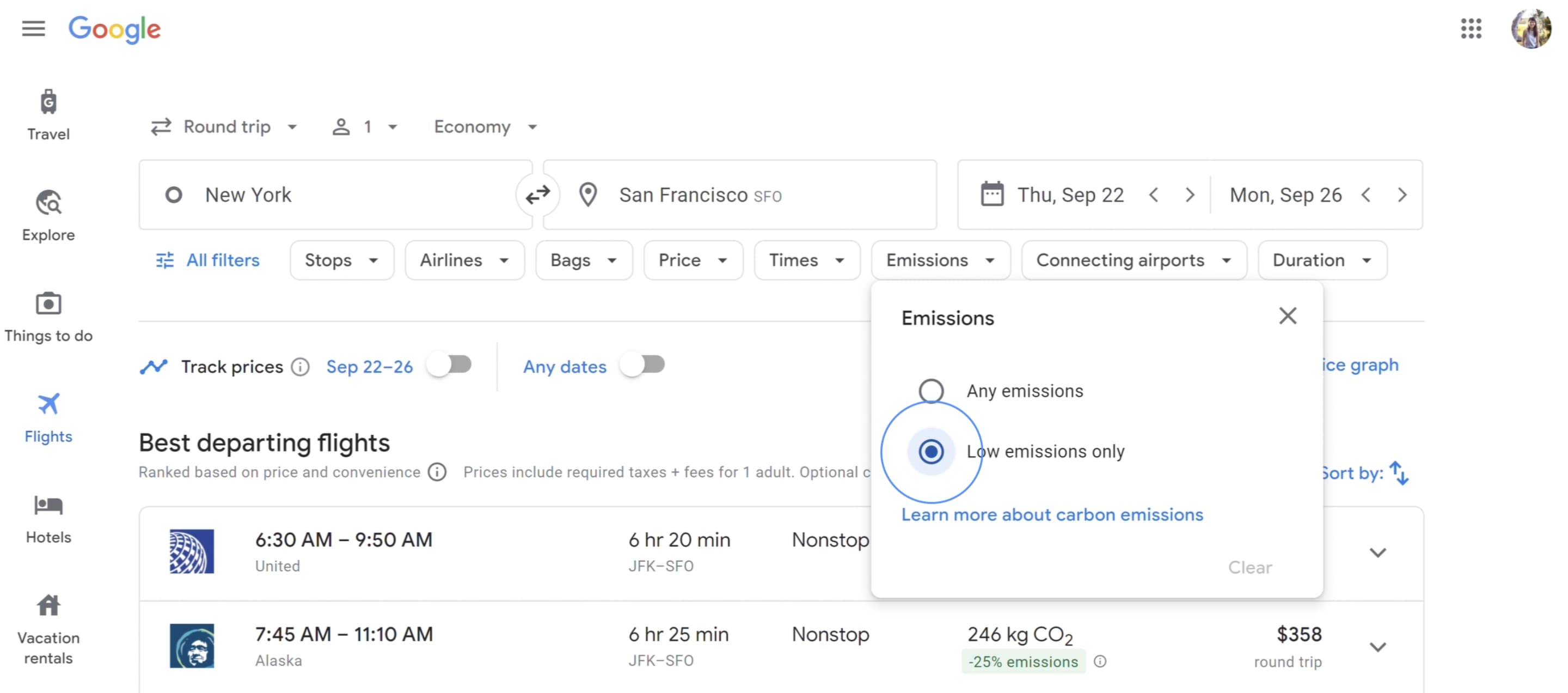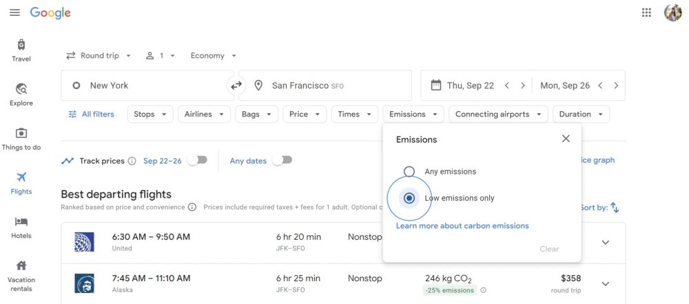 Meanwhile, Google Flights is getting a new Emissions filter that lets you choose between “Any” or “Low emissions only.” This is “compared to the average for similar trips.” It joins similar efforts in Google Maps for eco-friendly routing and EV optimization.