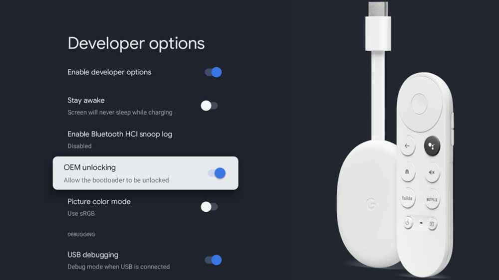According to AFTVnews, it looks like you can unlock the bootloader of the new Chromecast with Google TV HD right from the factory. When enabling Developer options, ordinarily the “OEM unlocking” option is not available on the 4K model. However, on the Chromecast HD you can toggle this to unlock the bootloader right away without any difficulties.