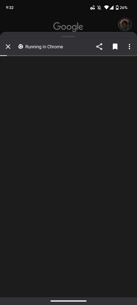 Meanwhile, this web sheet is still a Chrome Custom Tab, with Google reminding you that it’s “Running Chrome” at the top until the page fully loads. You still get a close button at the very left, while share, save, and the overflow menu round things out. There is a pull tab at the very top that lets you swipe down to dismiss, while going the opposite direction extends the sheet so the background is hidden.