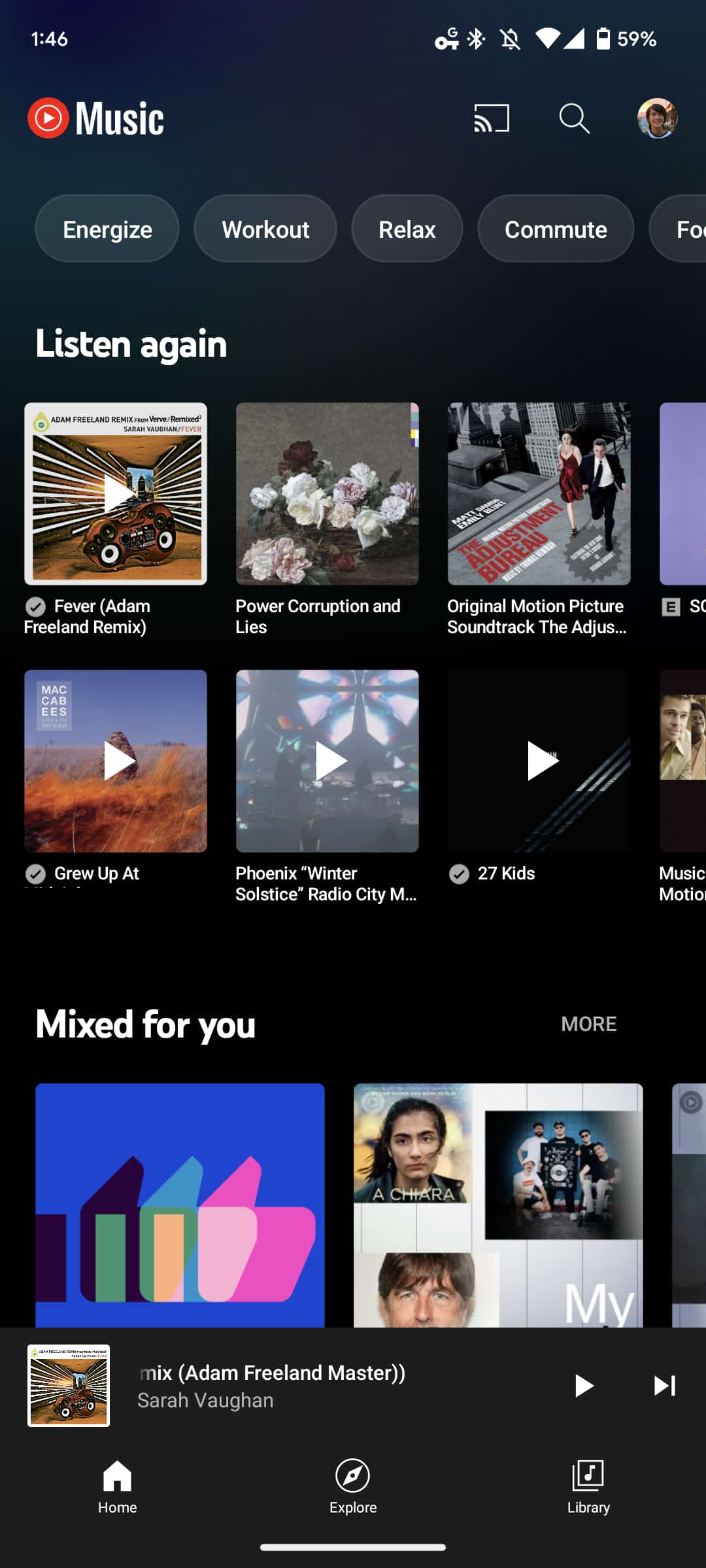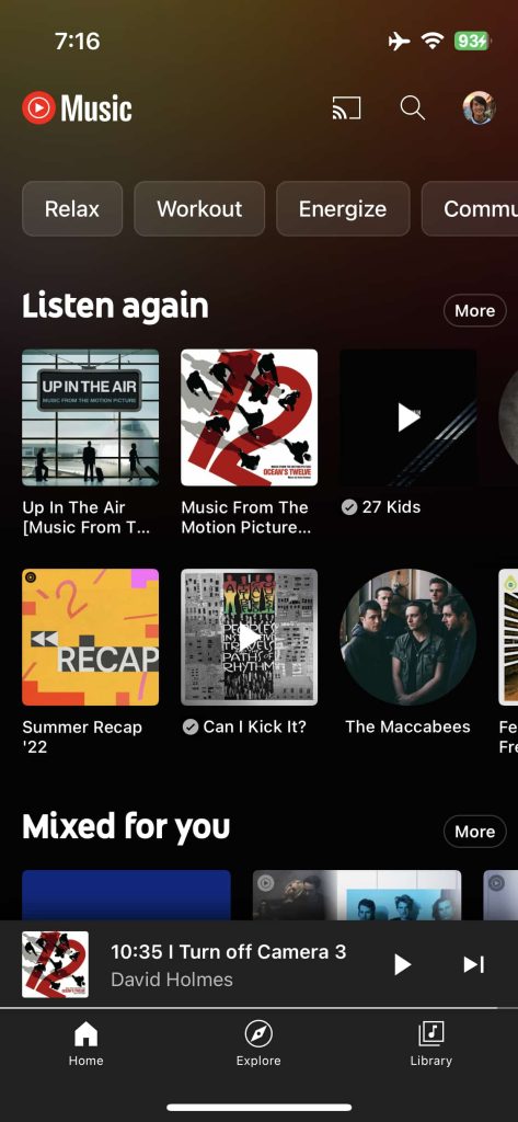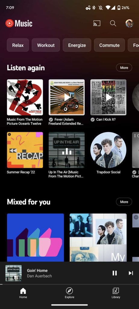 Meanwhile, at the top of the Home feed, the mood filters (Energize, Workout, Relax, Commute, and Focus) are now housed in rectangles with rounded corners instead of pills. This use of chips follows Material You guidance. Of course, the broader app still follows the general YouTube design language with a decidedly non-Material 3 bottom bar remaining.