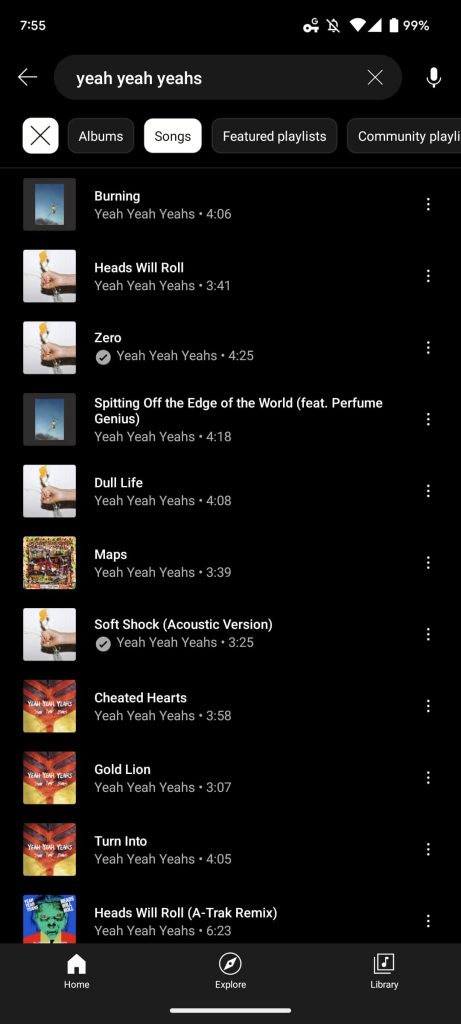 Elsewhere, YouTube Music now indicates when a song is available offline across Listen again, Quick picks, playlist/album/artist pages, Library, and search results. This includes manual and auto downloads.