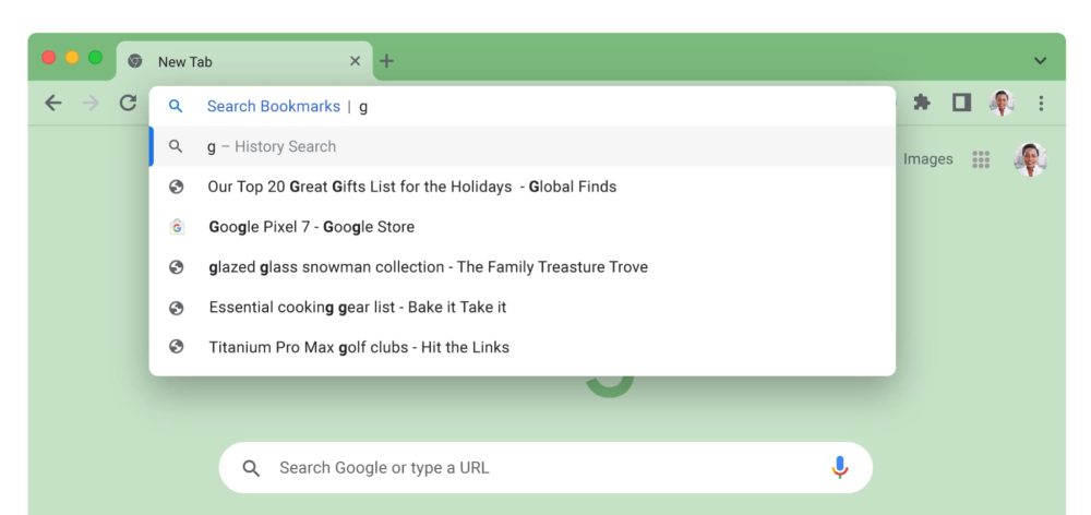 Update 12/6: Google today is making @bookmarks, @history, and @tabs search in the address bar official, and it’s already rolled out with Chrome 108 for desktop. You can either press your space bar after entering one of those three shortcuts or press the corresponding pill-shaped button with your mouse.