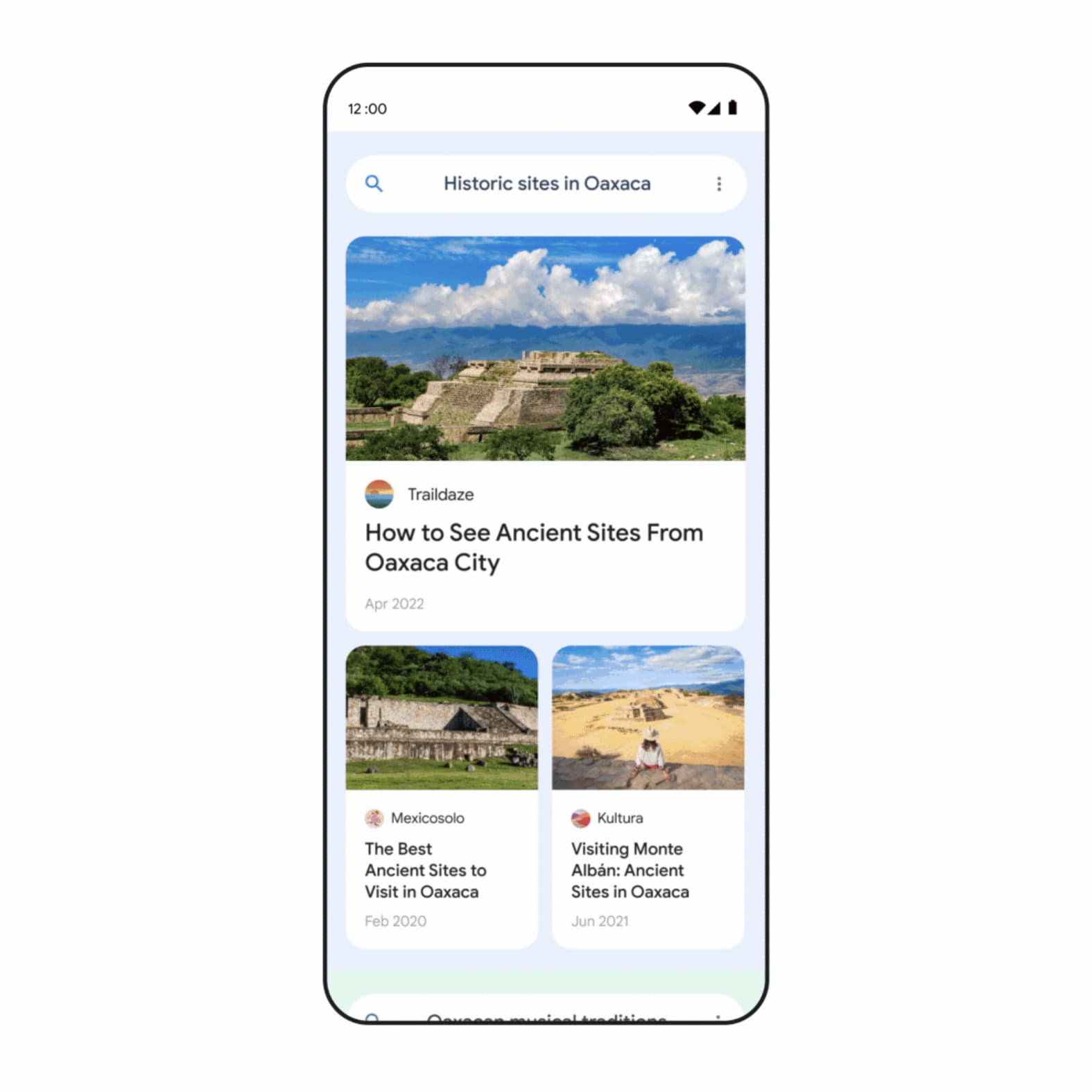 Say you’re looking for a destination in Mexico. We’ll help you specify your question — for example, “best cities in Mexico for families” — so you can navigate to more relevant results for you.