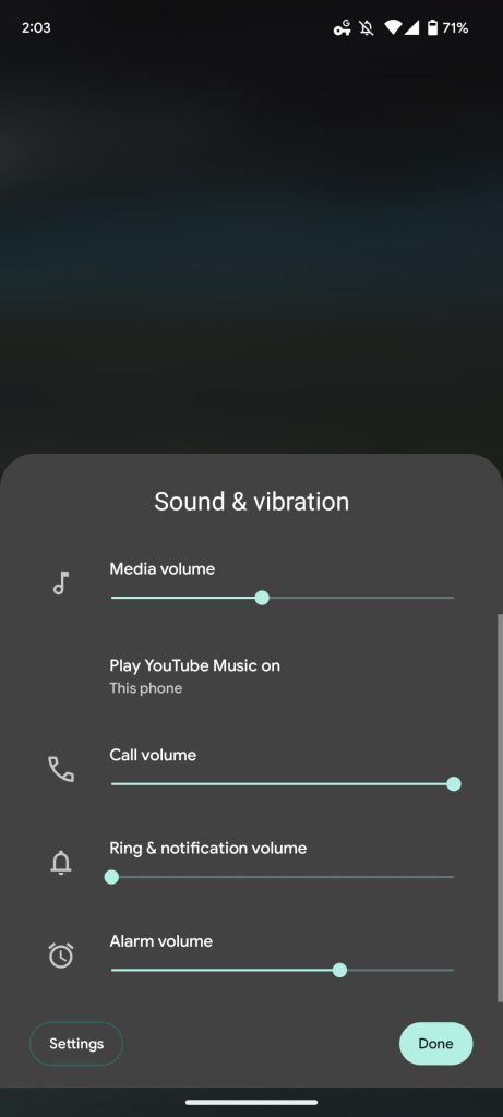 In a related change, adjusting volume with the physical rocker and tapping the overflow menu no longer opens “Sound & vibration” as a bottom sheet. Rather, it’s now centered, which makes it feel less integrated as a system element in my opinion.