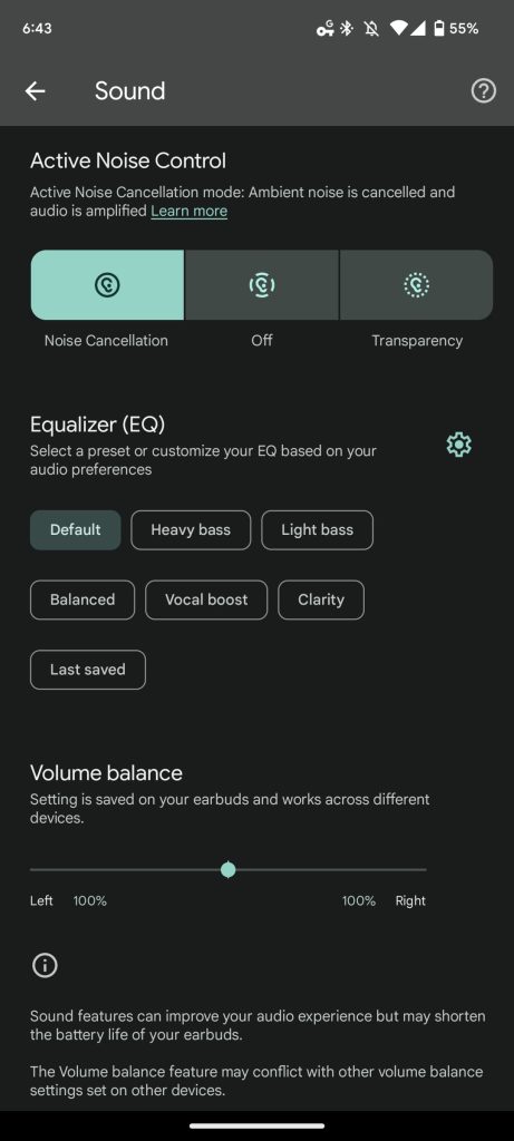 After setting in the app, your preferences “will be implemented on your Pixel Buds Pro no matter which device (i.e laptop, phone, watch, etc.) you are listening from.”