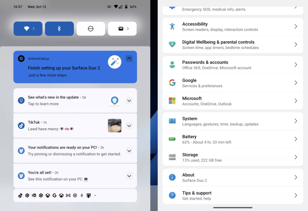 While the Surface Duo at launch (with Android 10) did not offer a strictly stock Android experience, it was relatively closer to that than most OEMs. Android 11 added even more visual customizations and 12L continues on that path, according to images and screenshots from Windows Central.