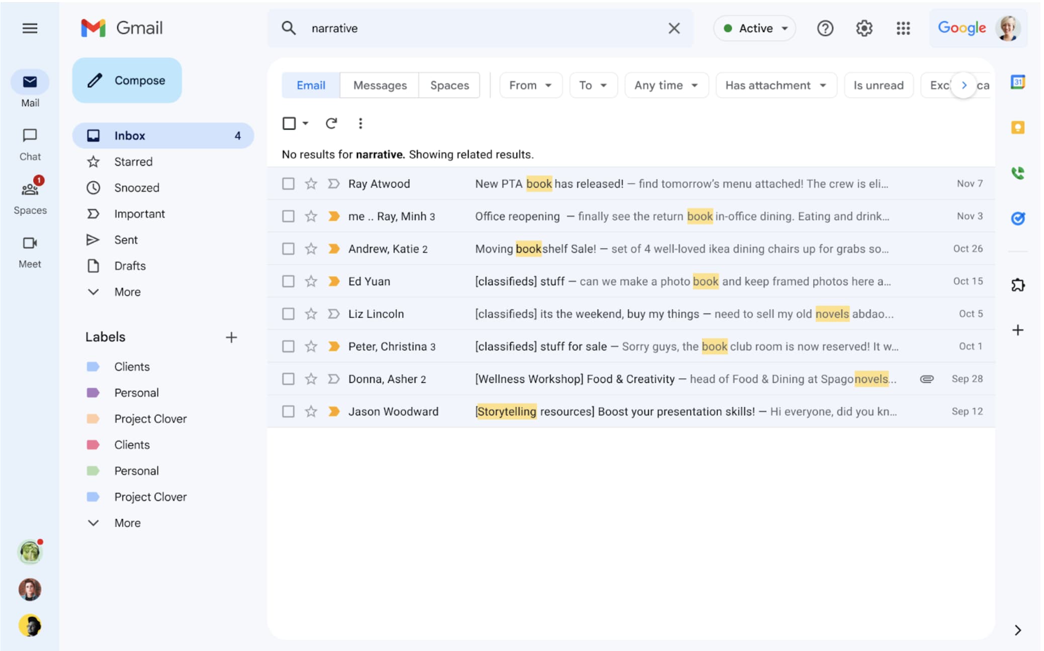 Google is rolling out a trio of features to improve the search experience in Gmail with labels and related results. Chat also gets some upgrades with AI-generated summaries and inline threading for Spaces.