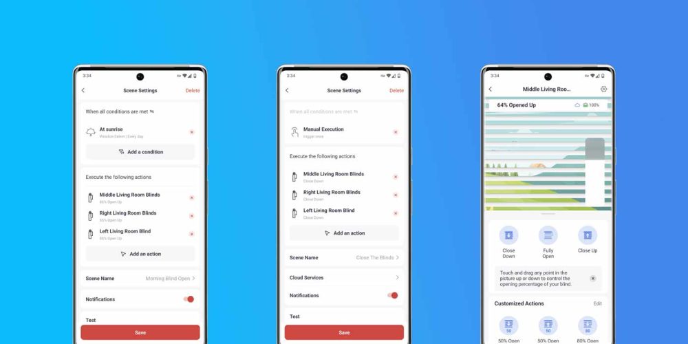 On top of manual execution, the SwitchBot Blind Tilt is capable of simple to complicated automation rules. You can set an easy time-based schedule, wherein the Tilt will close or open your blinds depending on what time of day it is. Alternatively, you can set a sunrise and sunset-based schedule which will open or close your blinds when the sun appears or vice versa. With these schedules, you can select multiple Blind Tilts to follow it.