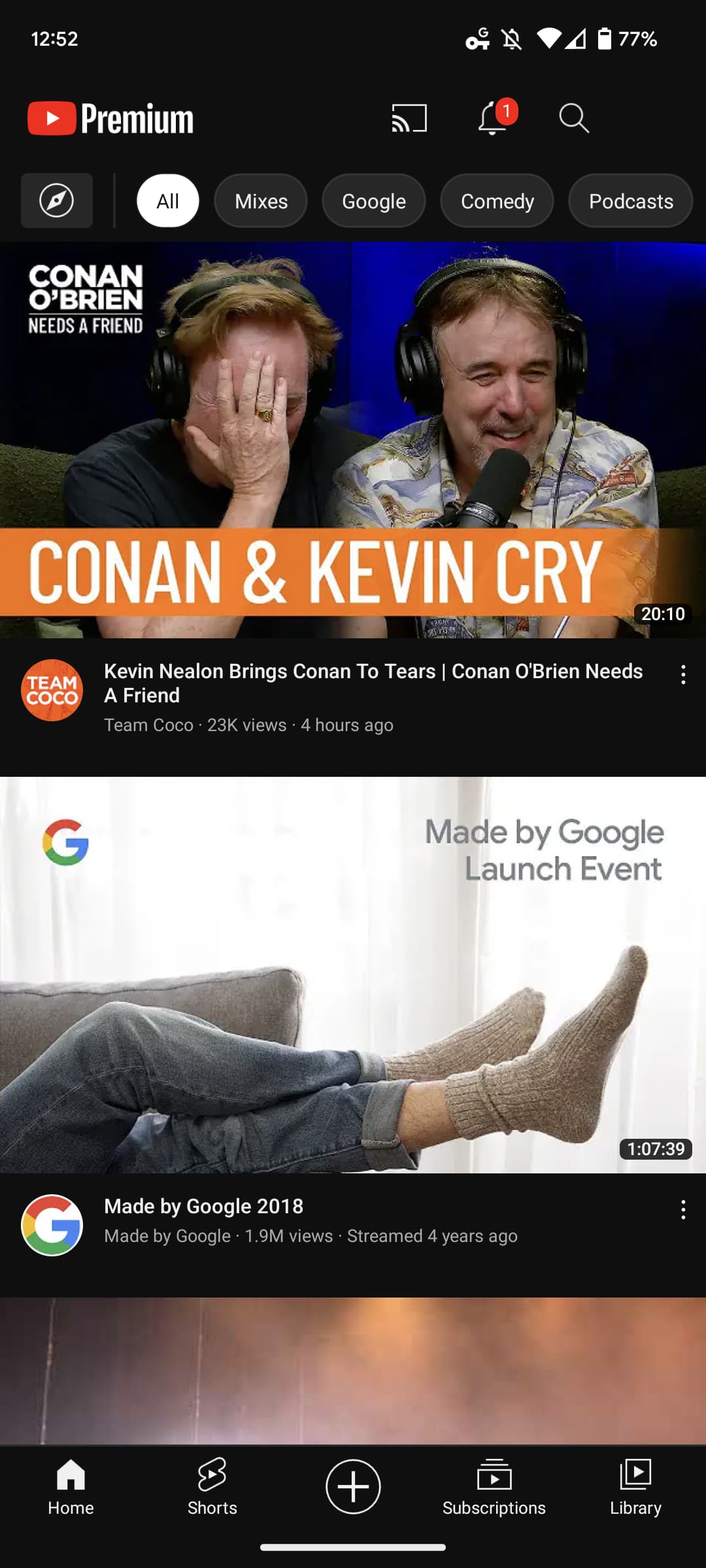 On desktop, YouTube.com gets several Material Theme tweaks that are not present on mobile. For example, the carousel just below the search bar now uses rectangles with rounded corners instead of pills while the equally rounded video thumbnails are much more pronounced here.