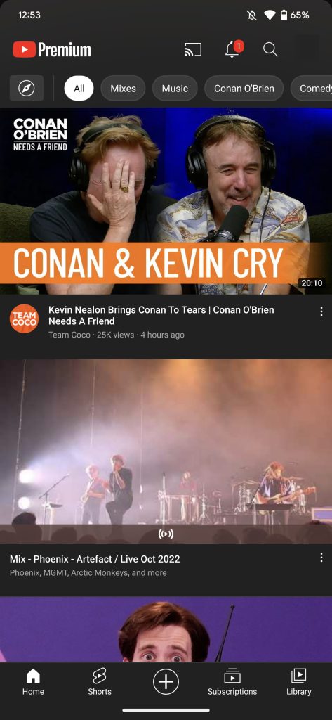If YouTube’s dark theme is enabled, the first change you’ll notice is how the background is darker (#0F0F0F), though not completely black. This matches YouTube Music and is something people have long wanted in the mobile apps.