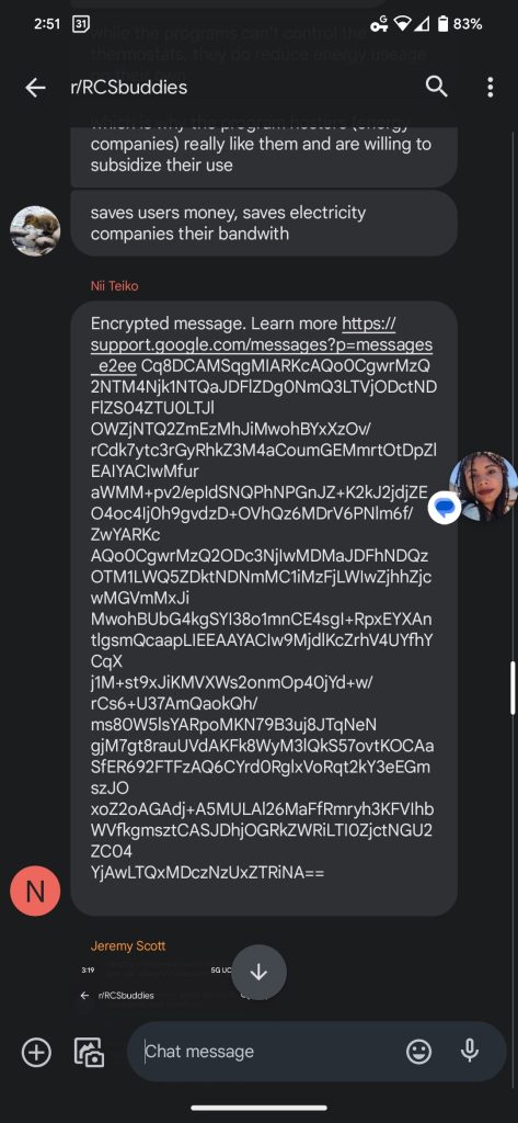 Users in the r/GoogleMessages subreddit noticed that, in a large group chat consisting of both Google Messages and Samsung Messages RCS users, one message came through saying that it was encrypted. On further digging, Redditors found that end-to-end encryption in a group chat was enabled through Google Messages, meaning that RCS group chats would be encrypted.