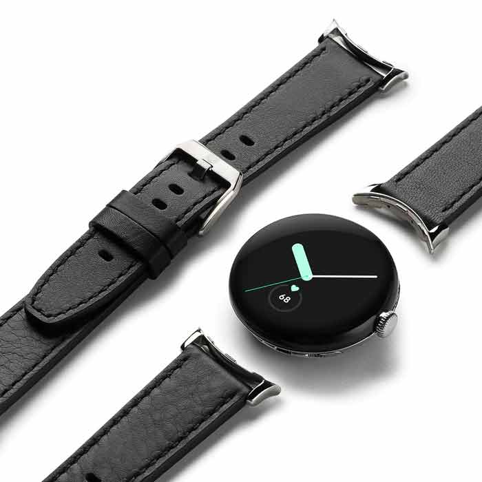 What makes Ringke’s option unique is the offering of a brown variant alongside black, complete with white thread stitches. This design is genuinely beautiful – the ending has a very nice silver-finished Pixel Watch connection.