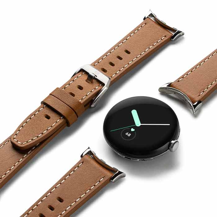 What makes Ringke’s option unique is the offering of a brown variant alongside black, complete with white thread stitches. This design is genuinely beautiful – the ending has a very nice silver-finished Pixel Watch connection.