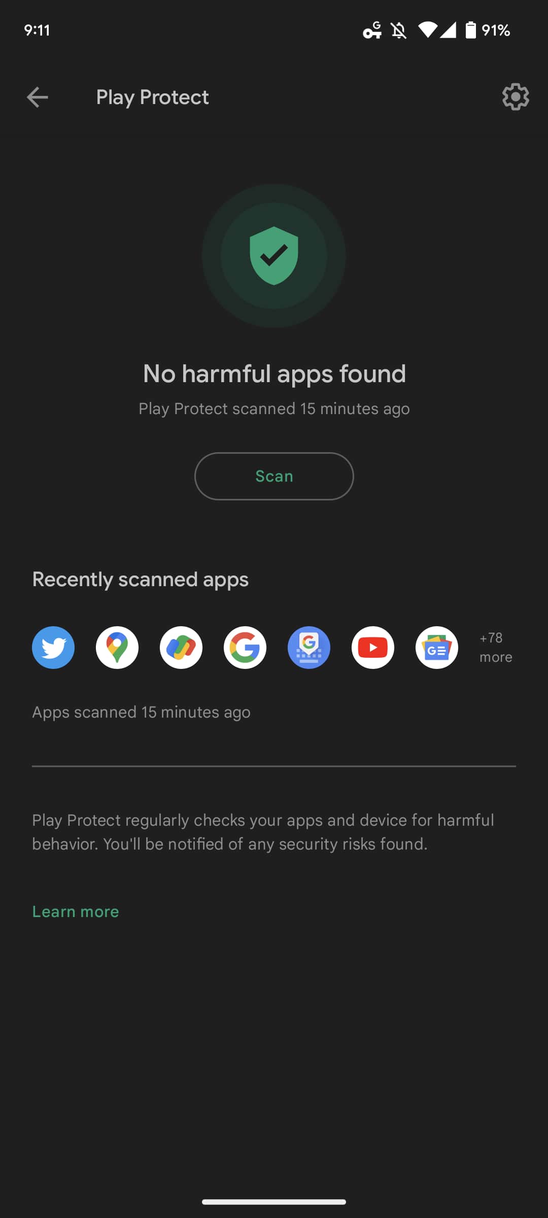 One way of seeing what apps are missing is by comparing that list to the “Recently scanned apps” row shown on the Play Protect page.