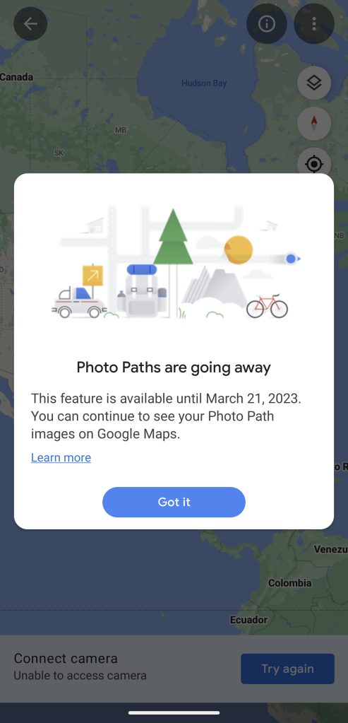 However, one feature that is being fully shut down with the Street View app’s demise is that of “Photo Paths.” First launched last year, Photo Paths were intended as a way to let nearly anyone with a smartphone contribute simple 2D photos of a road or path that had not yet been documented by Street View. Unlike every other feature of the Street View app, there is no replacement for Photo Paths on the web app or Google Maps app.