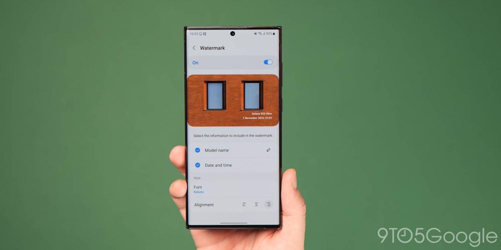 Watermarks can be added or enabled for all images taken with your Galaxy camera thanks to a new toggle in the Settings menu. This includes the ability to add a time and date watermark, the device model number or a completely custom text watermark to suit your style with a limited number of fonts and alignment options available.
