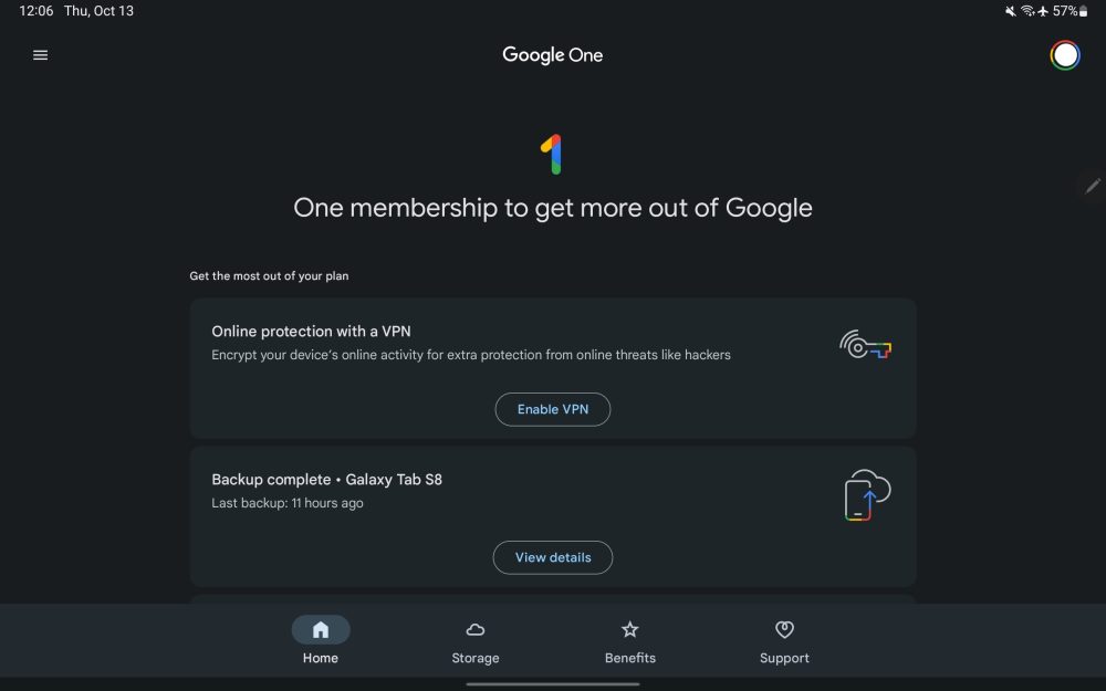 Besides announcing Mac and Windows VPN support today, Google One for Android is getting the tablet redesign that was previewed back in May.