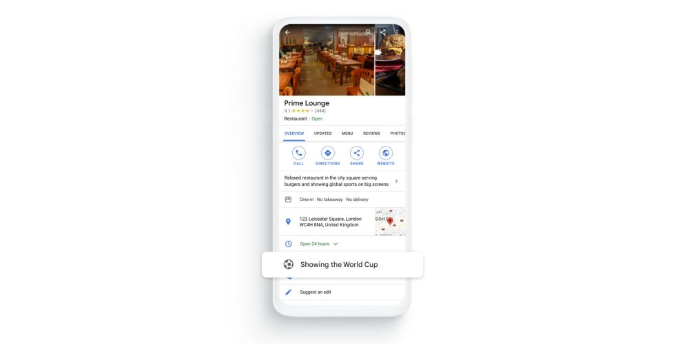 Google Maps and Search will let businesses (from their profile) add a “Showing the World Cup” label to their listings. End users can search “Where to watch the world cup near me” to find those nearby venues.