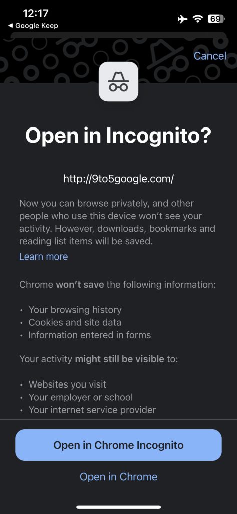 Google has added a nifty feature to Chrome for iOS that gives you the option to quickly open external links from other apps using Incognito. It’s especially useful on shared devices.