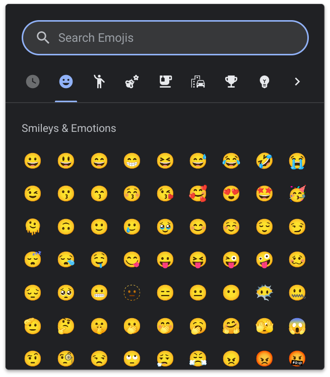 On Chromebooks today, there are two ways to access the emoji picker. You can either right-click in a text field and choose “Emoji” from the menu or press Search + Shift + Space to open it more quickly. However you choose to open it, you’re greeted by a searchable list of emojis reminiscent of Gboard’s older design.