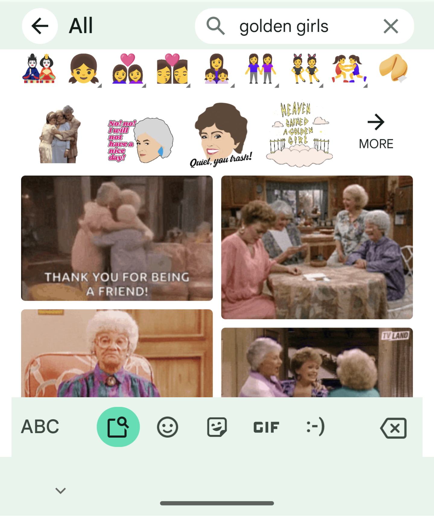 Most chat apps have built-in ways to share GIFs, and to make the experience more universal, the touch keyboard on some devices will include GIF search options, too. For example, Gboard on Android phones and the touch keyboard in Windows 10 and 11 both offer handy GIF sharing, in each case bundling GIFs into the same menus as emojis, stickers, and kaomoji.
