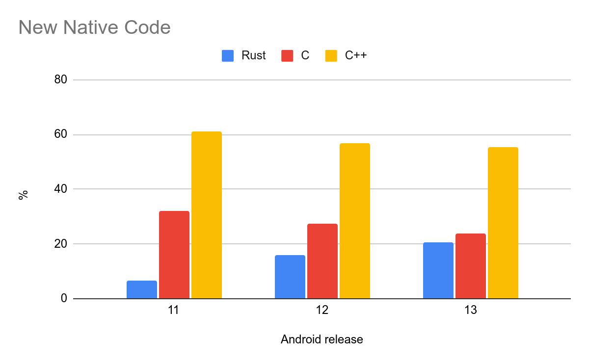 Android 13 is the first Android release where a majority of new code added to the release is in a memory safe language.
