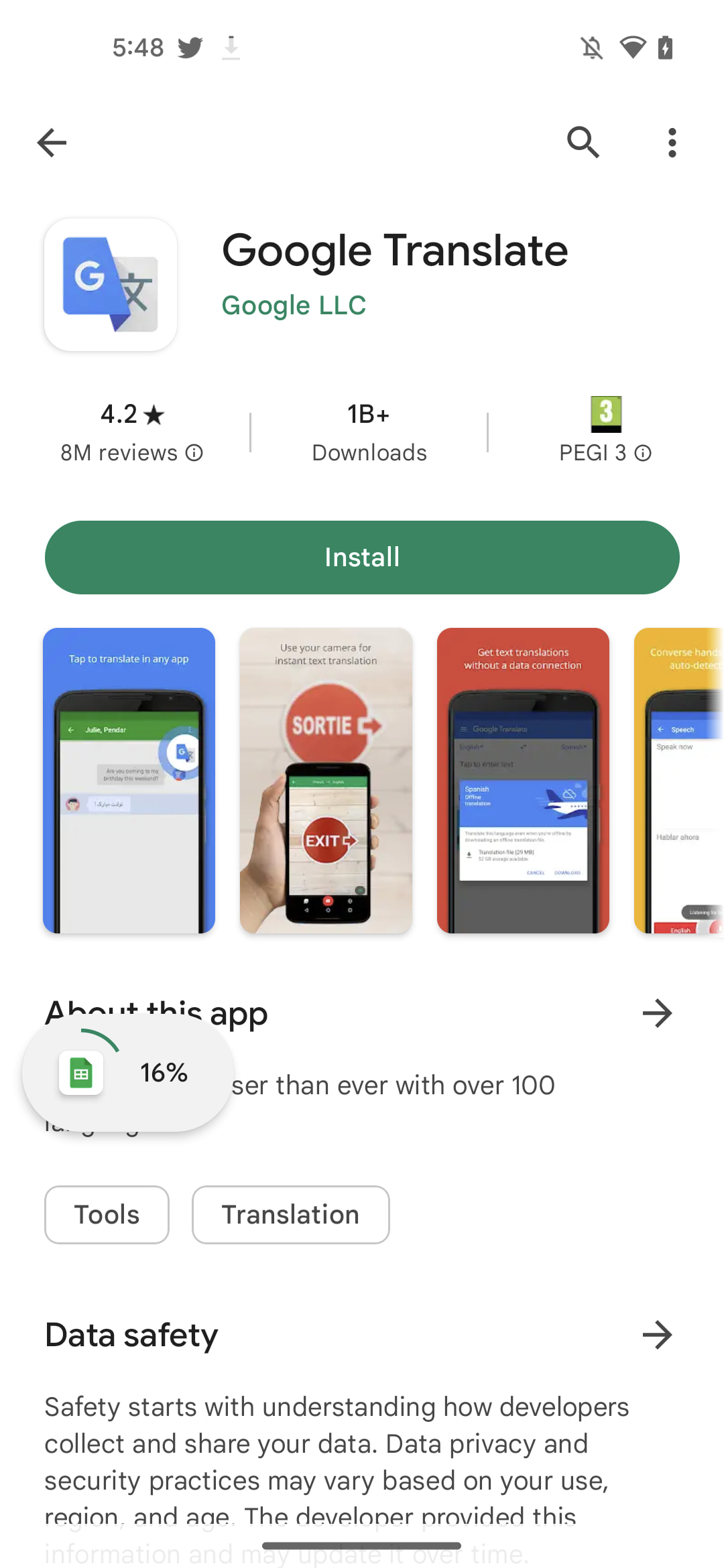 While one game is installing, I’ll keep browsing to kill time while I wait for the download to finish. One small problem, though, is that the download progress is only visible through notifications. It seems Google is preparing a way to keep an eye on how your Android app download is going while browsing the Play Store, with a bubble that floats above the page you’re on.