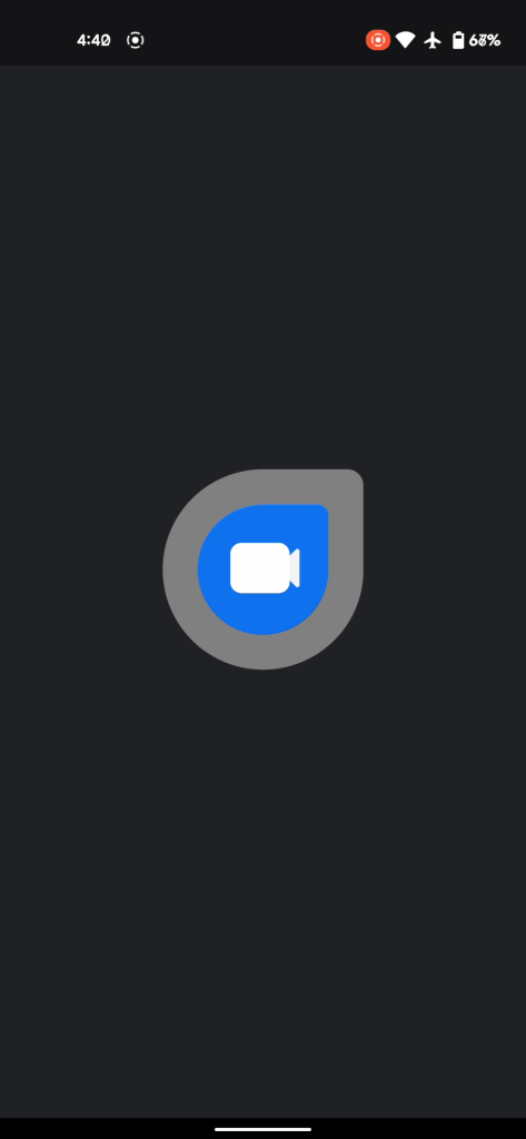Update 7/12: Version 144.0 of Google Duo for Android introduces a splash screen. Duo’s animation starts with an outline of the app icon. The blue shape then appears in the middle and expands outward, unlike the Workspace apps where color fills (out –>) in from the perimeter.
